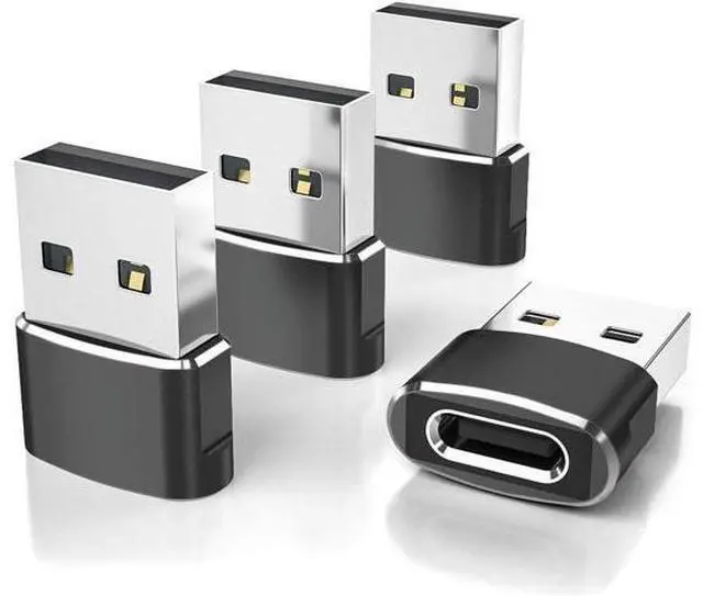 USB to USB C Adapter for iPhone 17 4Pack USBC Female to A Male Car Charger Adapter Type C Converter 16 Pro Max 15 14 Plus iWatch Watch 11 10 Se Ultra 3 iPad Air Galaxy S25 Black