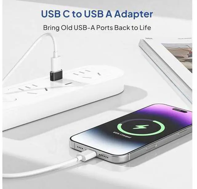 • Elebase USB to USB C Adapter for iPhone 17 4Pack USBC Female to A Male Car Charger Adapter Type C Converter 16 Pro Max 15 14 Plus iWatch Watch 11 10 Se Ultra 3 iPad Air Galaxy S25 Black