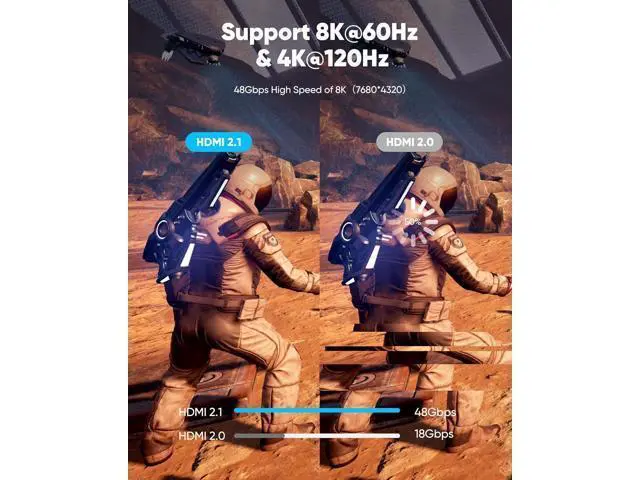 For Game Enthusiasts: This 8K Ultra High Speed HDMI Cable can achieve a super smooth picture of 4K@120HZ; Its latest game mode supports variable refresh rate, maximizes the value of the graphics card and CPU to obtain a smoother and more detailed picture