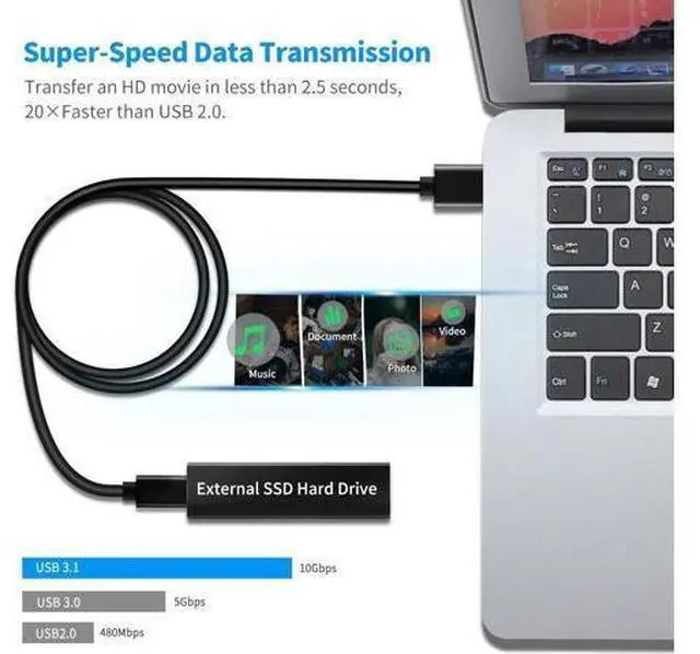 [ Excellent Performance ] This USB C 3.1 cable connects a portable external USB C 3.1 SSD to a computer for speedy file transfer or syncs and charges smartphones or tablets equipped with the USB C port. Data synchronization is 20 times faster than USB 2.0 cables (480Mbps). (Does not support video output. )[ Fast Charging & High Speed Data Transfer ] This usba to usbc data power cable can sync your favourite photos videos and music at a data transfer rate of up to 10Gbps(1250MB/s). Files can be synchronised in seconds. In addition it can quick-charge your USB-C devices at up to 3A safe charging power.