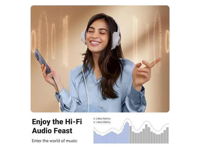 • Optimal Hi-Fi Sound Quality: This USB C to Aux Adapter supports up to 24bit/96KHz while others are 16bit/48Khz, with powerful noise reduction you can get higher fidelity sound from this USB C to Headphone Jack