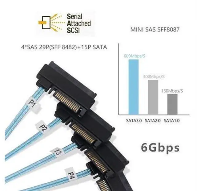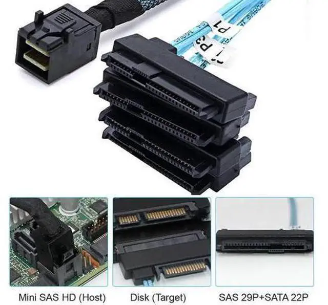 Internal Mini SAS SFF-8643 Host to 4 SAS 29Pin SFF-8482 Target Disk 6Gbps Data Server Raid Cable HD Mini-SAS cable configurations, The High Density (HD) system referenced as HD Mini-SAS (SFF-8643) in the SAS 2.1 standard, meets the 6Gb/s SAS specification. internal HD Mini-SAS Copper Cables Internal Mini SAS SFF-8643 to to 4 SAS 29PIN hard disk data Cable This SAS cable enables you to connect up to 4 SAS or SATA drives to a Mini SAS HD SFF-8643 controller. Not work for PCI-E SFF-8643 controller.
