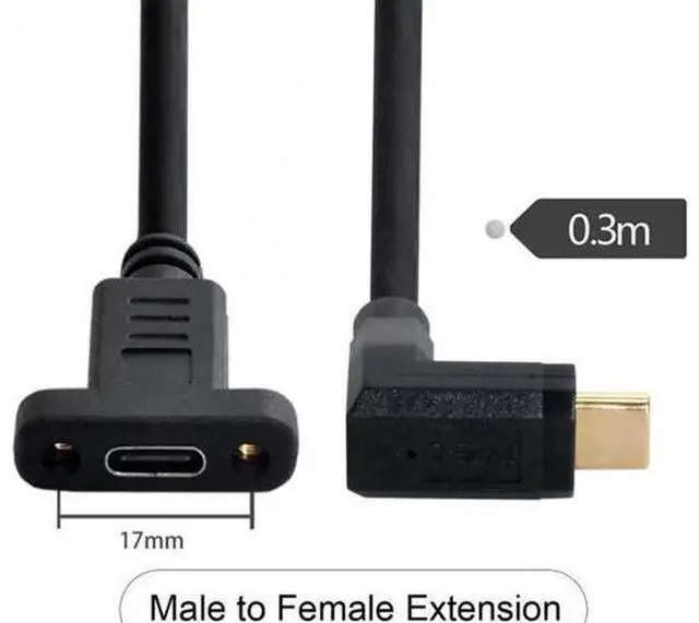 90 Degree Up & Down Angled USB-C USB 3.1 Type C Male to Female Extension Data Cable 30cm