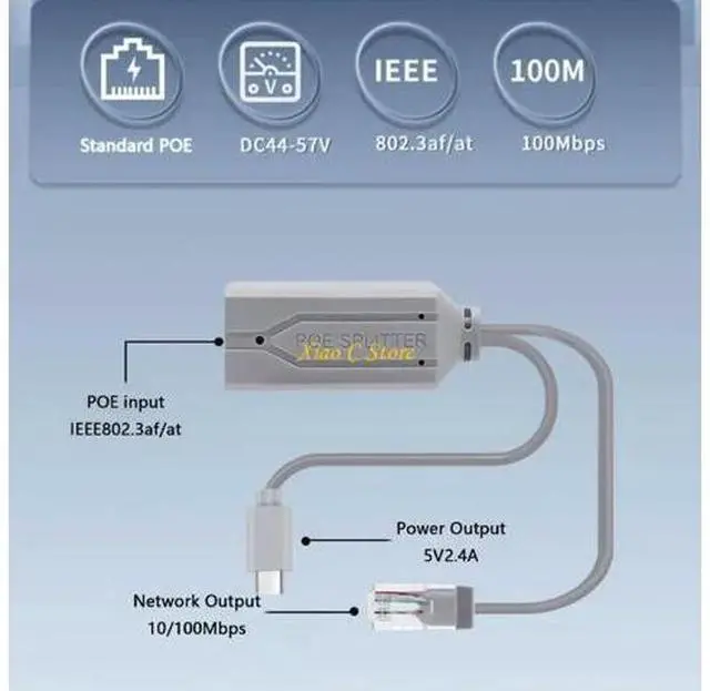 • Compactly USB C PoE Splitter 48V To 5V 2.4A Compatible for NonPoE Devices IEEE802.3af Standard Seamlessly Integration