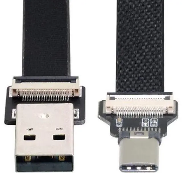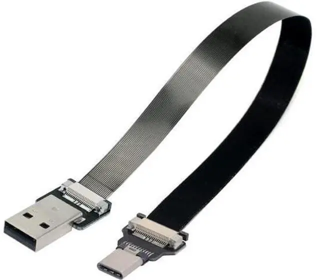 Type-A USB 2.0 Male to Type-C USB-C Male Data Flat Slim FPC Cable 50CM for FPV & Disk & Phone