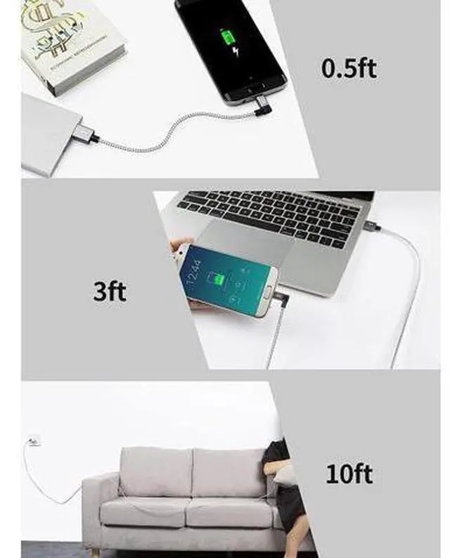 Two-tone premium micro usb cable with high-grade aluminium alloy case, triple shielded(AL-Foil/Mylar shielding+twisted pair shielding+ 100% Tin-copper braiding shielding), with BLACK+WHITE color cotton jacket. ***Please note that this is a cable with braided jacket, so it's a little stiffer but more durable than PVC cables. *** HIGH SPEED TESTED, Support Sync data at 480 Mpbs. Charge Android and Windows smart phones, tablets & MP3 players, digital cameras / camcorders & more. 90-degree design can make for better cable management in some situations, especially in tight spaces.