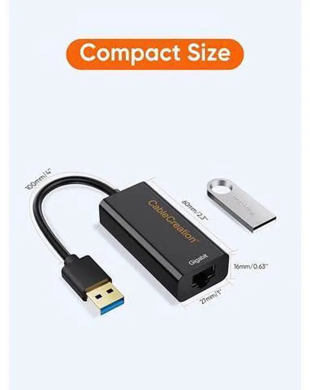 CableCreation SuperSpeed USB 3.0 Ethernet Adapter 10 M / 100 M / 1000 M Gigabite Provides a wireless alternative for connecting to the Internet in Wi-Fi dead zones Streaming large video files, or downloading a software upgrade through a wired home or office LAN. Wired connections provide faster data transfers and better security than Wi-Fi. The auto-sensing USB adapter supports any 10/100/1000 Ethernet network. Compatible and Incompatible Operating System Windows Windows 11/ 10/ 8.1 / 8 / 7 / XP/ Vista Mac OS X Mac OS X 10.5 / 10.6 / 10.7 / 10.8 / 10.9 / 10.10 / 10.11 and above macOS acOS 10.12.