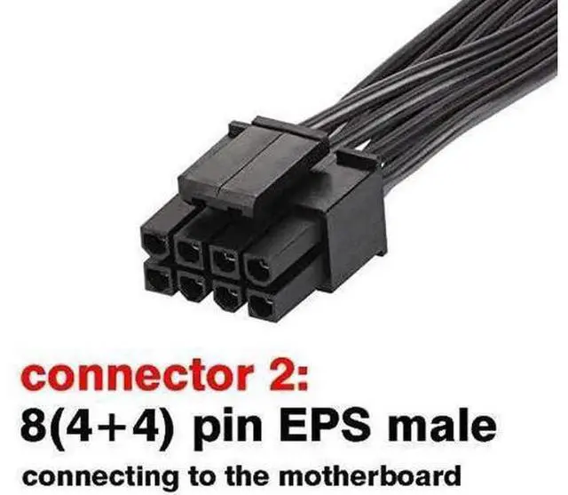 Connector 2 : EPS-12V 8(4+4) pin male (connect to Motherboard 8(4+4) pin EPS)