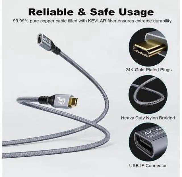 NOTE: The 20Gbps speed requires that both ends of the cable are plugged into USB 3.2 Gen 2, USB4, Thunderbolt 3, or Thunderbolt 4 devices, or you will get less than 20gbps. 4K@60Hz Video & Audio Output CableThis USB C 3.2 cable monitor cable supports output resolutions up to 4K@60Hz. As long as your input device and output display are USB-C/thunderbolt 3 4 port and support video in and out function, you could extend the connection between your laptop to a larger/portable monitor for e-learning, working, gaming or watching movies, via this USB 3.2 Gen2 extender cable. Exquisite Products and Lifetime Customer Support 18 Months Worry free Product warranty and Lifetime technical support, and 24/7 email for Customer Service Support.