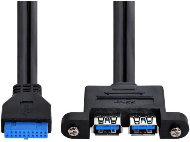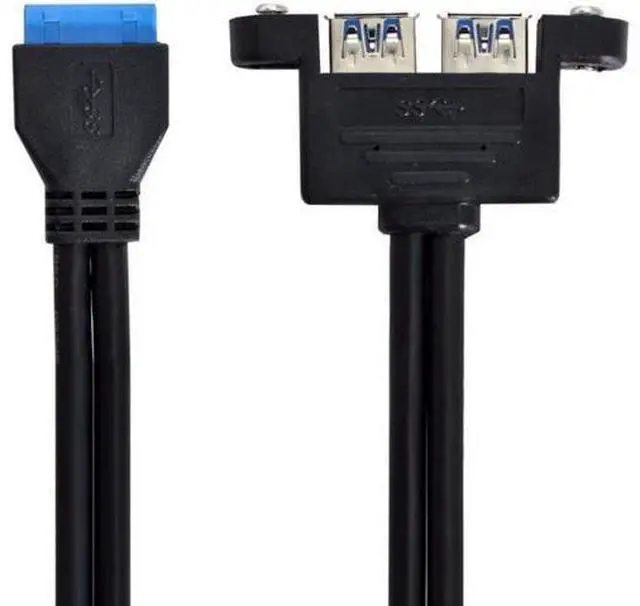 2 Ports USB 3.0 Female to Motherboard 20Pin Male Cable for Front Panel Screw Mount Type 1.64ft 0.5m