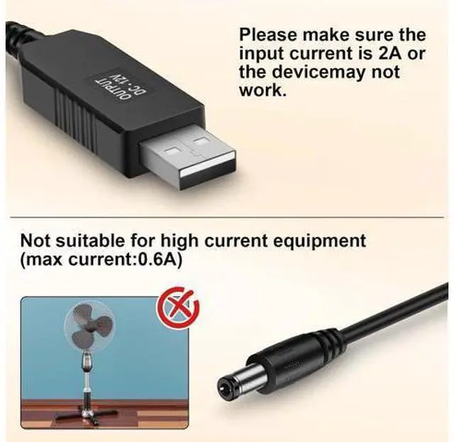 USB input: 5V 2A male Please Make Sure the current is 2A or the device may not work.