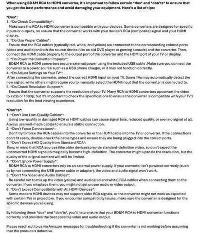 • BD&M AV to HDMI Converter RCA to HDMI Adapter Composite CVBS Video Audio Support PAL/NTSC for TV/PC/ PS3/ STB/Xbox VHS/VCR/Blue-Ray DVD Players