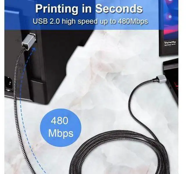 High Speed Printing: The data transmission speed of this USB printer cord reaches to 480Mbps you can print documents or resume in seconds without any issues at all. Also this printer cable is backward compatible with full-speed USB 1.1 (12 Mbps) and low-speed USB 1.0 ( 1.5 Mbps) standard devices. Plug and play no need to install any plug-in convenient and fast.?
