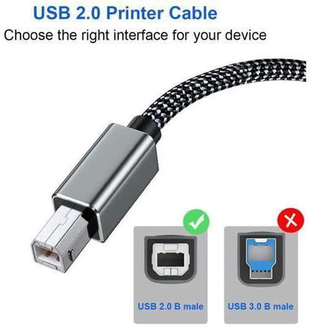 • Naukay Printer Cable 10 FT USB A to B Cable 2.0 USB B Cable High-Speed Printer Cord High Speed Scanner Cord Compatible with HP Canon Dell Lexmark Xerox Epson Samsung and More (Grey)