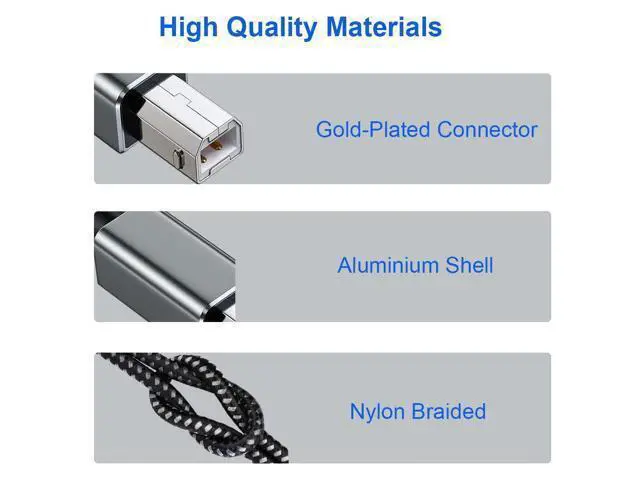 Gold-plated Connectors: Built-in numbers of high-purity core wires and shielding layers and constructed with gold-plated plug corrosion-resistant connectors and reinforced joint design this USB 2.0 printer cable provide superior transmission performance and protect against noise for optimal signal clarity and shielding to minimize interference.