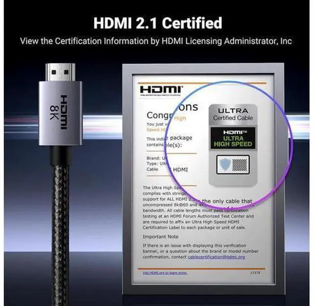 UGREEN 8K HDMI 2.1 Cable 48Gbps , Certified Ultra High Speed HDMI Cord Aluminum, 4K@240Hz 120Hz 10K 8K@60Hz, HDCP 2.2&2.3, eARC HDR 10 Dolby 6.6FT