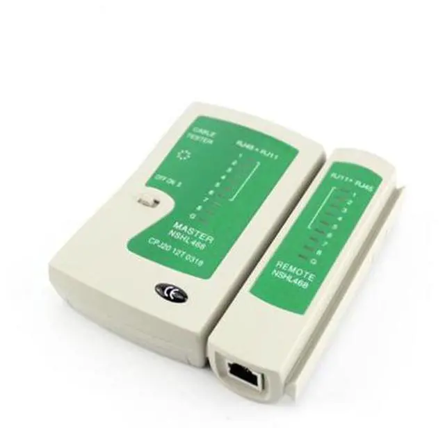 RJ45 RJ11 Cat-5 Cat-6 cable: if all the cables work, the lights will become green from NO. 1&2 to NO. 7&8 sequently. if any light is not on or turns on unsequently, the cables are broken. Automatically scan mode, rapidly testing, the streamline shape is in accordance with the design of somatology Durable design, working well even in construction location Super handy device ensures your good mood Cable Tester for RJ11, RJ45, 10/100 Base-T and telephone cable... etc Automatic efficient scan for the miss wiring, disorder cable, open and short circuit Remotely test cable up to 1000 ft in length ( remote kit included ) 8 LEDs to indicate which wire whether open or not on both remote and master unit Powered by DC 9V reduplicated battery (not included) Protective power switch for low power consumption Package 1 x Cable tester