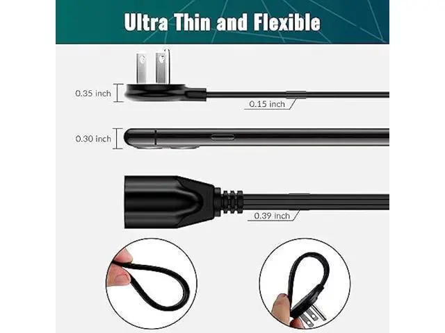¡¾Flat Plug Design & Space Saving¡¿With only a 0.35 -inch ultra flat plug design, Elecan upgraded flat wall plug is thinner than the regular flat plugs, which makes the best use of your outlets! The 45¡ã angled plug prevents other outlets from being blocked. It can easily fit in tight spots and hide behind like furniture, bookshelves, desks, or anything close to the wall, sitting flush against the wall completely. ¡¾Flat Extension Cord¡¿ Elecan FLAT EXTENSION CORD is thin enough to run under rugs. It's much better than the standard round extension cord and doesn't hurt when you step on that spot on the rug.