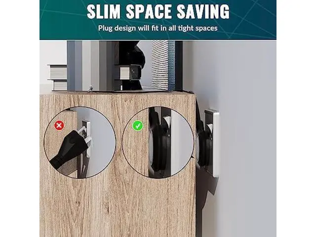 • ¡¾Flat Plug Design & Space Saving¡¿With only a 0.35-inch ultra flat plug design, Elecan upgraded flat wall plug is thinner than the regular flat plugs, which makes the best use of your outlets! The 45¡ã angled plug prevents other outlets from being blocked. It can easily fit in tight spots and hide behind like furniture, bookshelves, desks, or anything close to the wall, sitting flush against the wall completely.