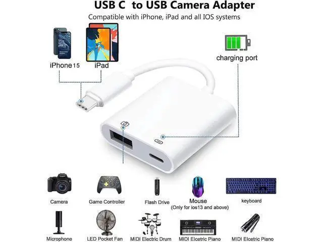 • USB C to USB Camera Adapter for iPhone 16 Portable USB C Male to Female USB OTG with Fast Charging Port for iPhone 16/16 Pro/16 Pro Max/15/15 Pro/15 Pro Max iPad Pro to USB Flash Drive/Keyboard/Mouse