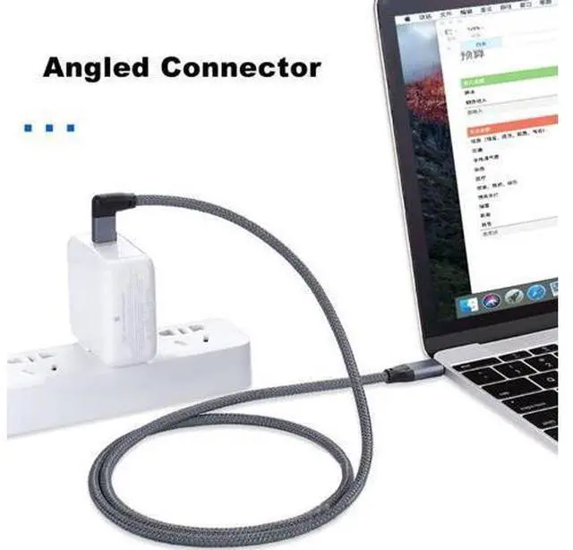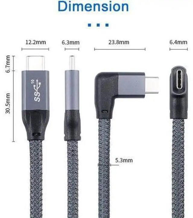 Support 10Gbps data and 100W Power. Reversible Design and right angled for Type C connector, Reversible plug orientation & Cable direction for Laptop & Tablet &Mobile Phone & Hard Disk Drive 90 Degree Right Angled Type-C USB-C Male to Male USB 3.1 10Gbps 100W Data Cable for Laptop & Phone Nylon sleeve and Silver connector.
