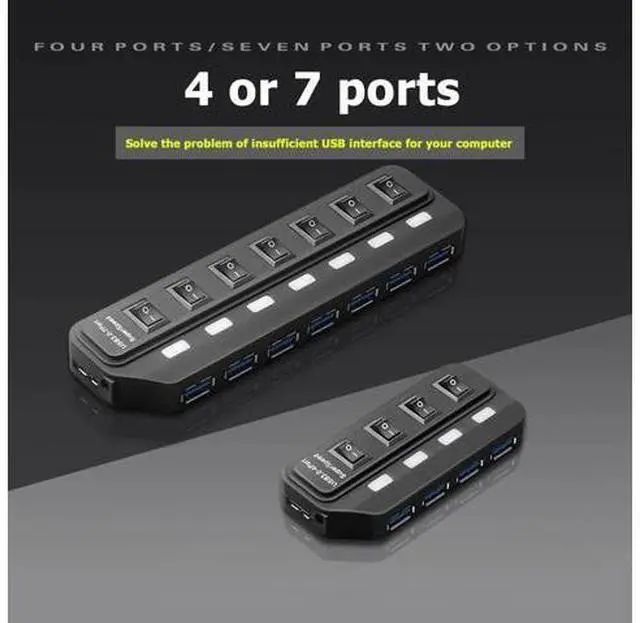 4/7 Ports USB 3.0 Hub USB Splitter with Individual Power Switches for PC USB3.0 Splitter with Four Switches Hub Hub With 7-port