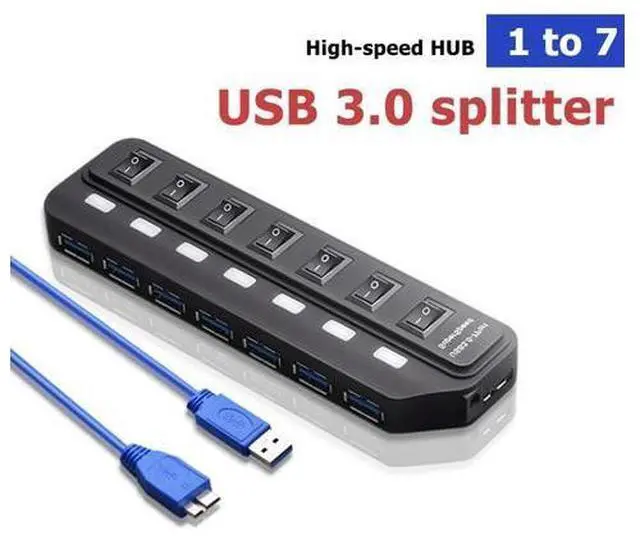 Spanish buyers attention: if your address includes following postal code please do not choose the Spanish warehouse. The zip code starts with 51/52/07/35/38. Overseas warehouse cannot be delivered. Otherwise we will send the order from China warehouse. 4/7 Ports USB 3.0 Hub Multi USB Splitter with Individual Power Switches for Laptop Desktop PC Computer