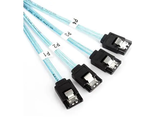 • HD mini SAS breakout cable designed with acetate cloth tape over slim ribbon cables for strain relief to protect cables without rigidity; Woven mesh sheath covers half of the cable for easy routing; P1 to P4 markers provide easy ID after installation; Low profile SATA connectors have easy-grip treads with stainless steel latches to prevent accidental disconnection and reduce vibratio