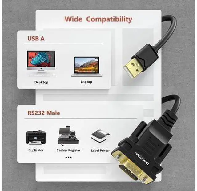 Exquisite design: usb-to-serial Gold Plated USB RS232 connector and PVC cable ensure high performance and extra durability. Powered by USB port this USB to DB9 series RS232 adapter cable is designed to fit easily into your handbag.