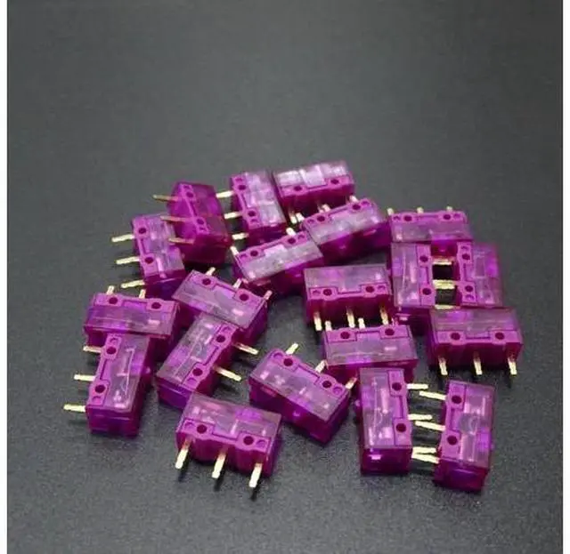 Features: 150 millions click. purple dot purple mouse micro switch mouse button Gold contacts. Normal strength, crisp hand-free, uniform springback and no hysteresis. About 0.7N, Gold contacts, life of up to 150 million times! The rebound is compact and fast.
