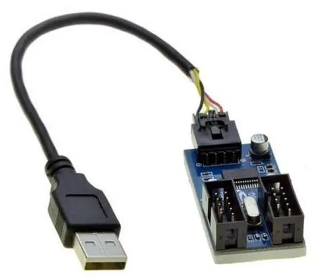 • FOR USB 2.0 Male 1 to 2 9Pin USB header Female Extension Cable Card USB2.0 to 9-Pin USB HUB USB 2.0 9 pin Connector Port Multilier