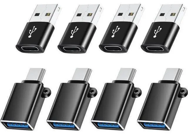 • USBC Adapters 8 Pack Type C to USB Adapter USBC USBA Male Female Adaptor C to USB 3.0 OTG Converter for iPhone 15 14 13 MacBook iPad Charger Black
