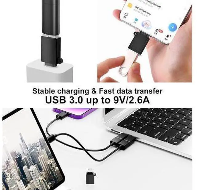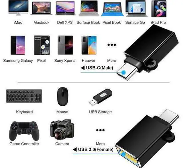 Wide Compatibility: Type C to USB adapter is compatible with type C/Thunderbolt 3 laptops/tablets/OTG phones such as iPhone 15 Pro Max/ MacBook Pro/Air 2023 iPad Pro 2021/2020 Galaxy S22/S21/S20. USB A to C adapter specially compatible with charger cables for iPhone 15 14 13 12 Mini Pro Max 2 3 Galaxy S23 S24 A53 A54 iPad Pro 2022/2021 Watch iWatch Series SE 7 8 9 Ultra and more.