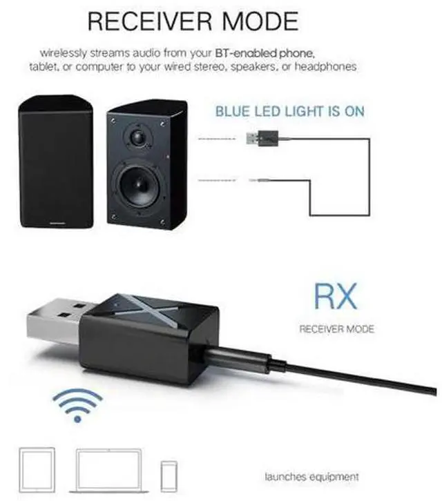 Receiver mode: wirelessly streams audio from your BT-enabled phone, tablet, or computer to your wired stereo, speakers, or headphones. Has broad compatibility. With the included 3.5 mm cable, can widely be used on your computer, laptop, home stereo system, headphone, smartphone, Mp3 player, compact disc player, etc. Easy to use. Just plug and play. Mini and lightweight, convenient to carry.