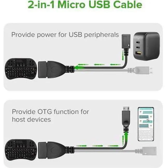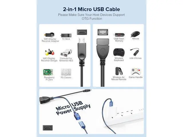 2-in-1 Micro USB (OTG Cable with Power) Adapter Replacement for Fire Stick 4K /Host Devices/PlayStation Classic etc- 2 Pack