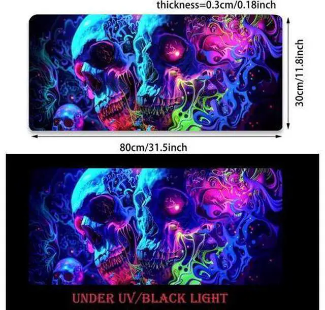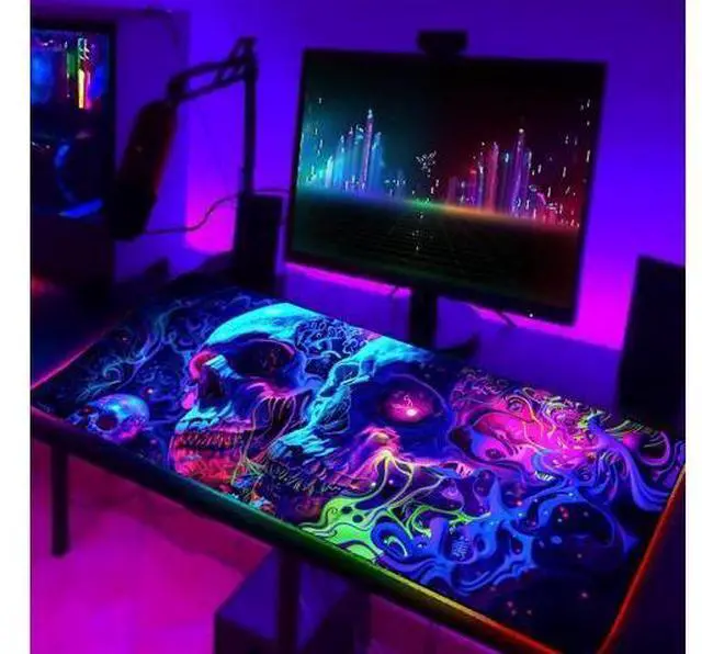 Blacklight Reactive Neon Skeleton Design: Glows brightly under UV light creating an immersive vibrant atmosphere for gaming or work.