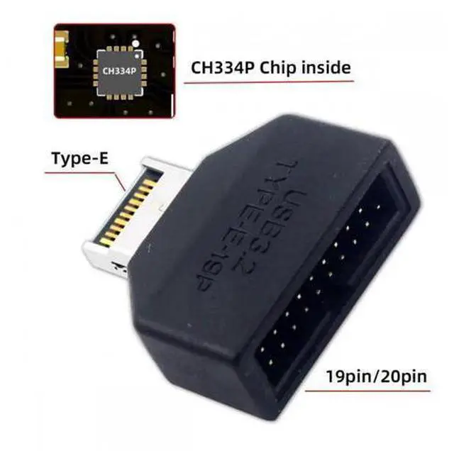 Overmold Type-E IDC Socket USB 3.1 Front Panel Header to USB 3.0 20Pin Header Extension Adapter with CH334P USB 3.2 / 3.1 require a different front panel header than USB 3.0. The adapteris a converter to convert the available USB-E Female of a motherboard into a USB 3.2 / 3.1 header. The Type-E port supports 10Gbps USB Data from SSD/HDD. Doesn't support any audio, video and docking output, Not work for any PD power, DP alt mode. The Type-E port only has one lane USB 2.0 singnal, with our CH334P chipset, it can transfer two lanes USB 2.0 singnal to 19pin/20pin header and connect two USB 2.0 device at same time.