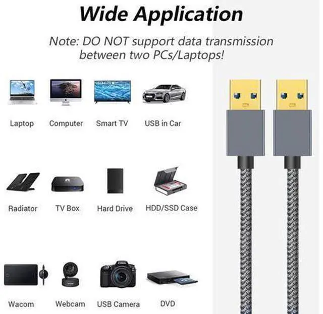 USB 3.0 male-to-male mobile hard drive enclosure data cable for notebookcomputer cooling- two ends with male connectors of USB 3.0 type 5M