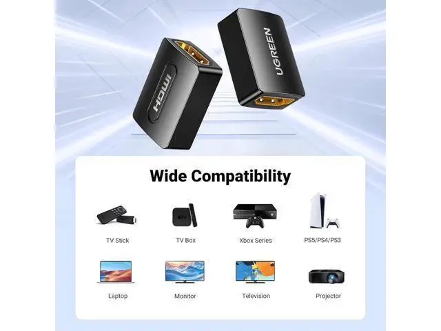 • UGREEN HDMI Coupler 2 Pack 4K@60Hz Female to Female Adapter HDMI 2.0 Extender for 3D Connector Compatible with HDTV TV Stick Chromecast Nintendo Switch 2 Xbox PS5/4 Laptop PC Projector