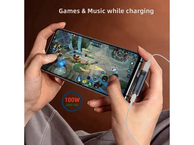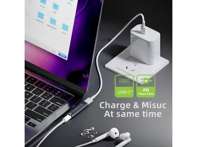 • USB-C Type-C to 3.5mm Audio DAC AUX Music 100W PD Power Adapter for Laptop Tablet Phone