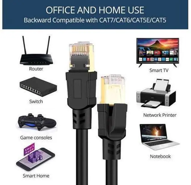 Wide Compatibility: The Cat8 Ethernet cable with gold-plated RJ45 connectors is perfectly compatible with routers, modems, switches, PCs, laptops, PS5, PS4, PS3, X-Box 360, X-Box One, couplers, hubs, Keystone outlets, Smart TVs, Imacs, and other devices, and is also backward compatible with Cat6, Cat5e, Cat5.