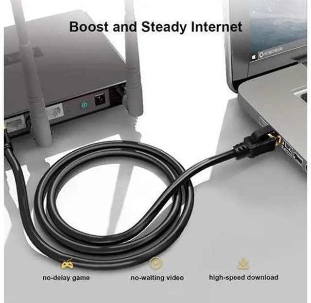 • Wide Compatibility: The Cat8 Ethernet cable with gold-plated RJ45 connectors is perfectly compatible with routers, modems, switches, PCs, laptops, PS5, PS4, PS3, X-Box 360, X-Box One, couplers, hubs, Keystone outlets, Smart TVs, Imacs, and other devices, and is also backward compatible with Cat6, Cat5e, Cat5.