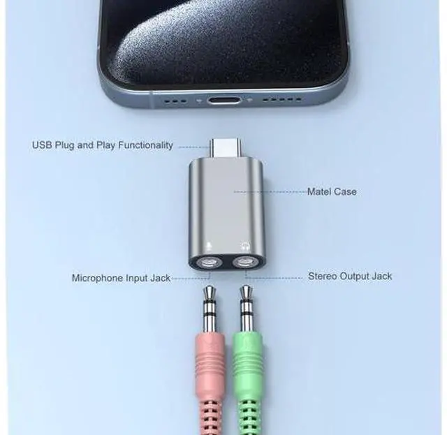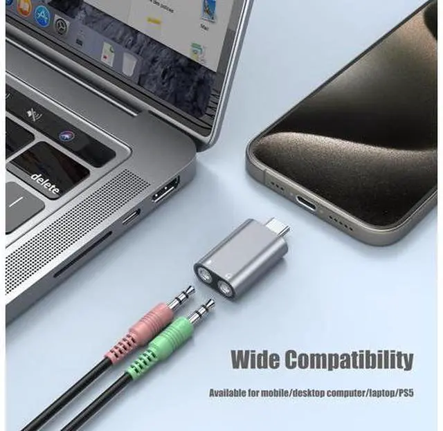 The usbc to audio jack adapter easily converts a usbc port into a Stereo output jack and a Mono microphone-input jack. ( Please kindly note it Not compatible with TV / Car / PS3 / Truck. Supports 3 pole microphone, but Not supports 4 pole microphone. For listening functions, this USBC port is output, not input. Audio can only transfer from USBC port to 3.5 mm port). This usbc to headphone jack adapter adopted an advance DAC Smart Chip. So it could delivers an exceptional audio experience. Shielding current interference, eliminating music noise, ensuring clarity and purity of audio transmission.