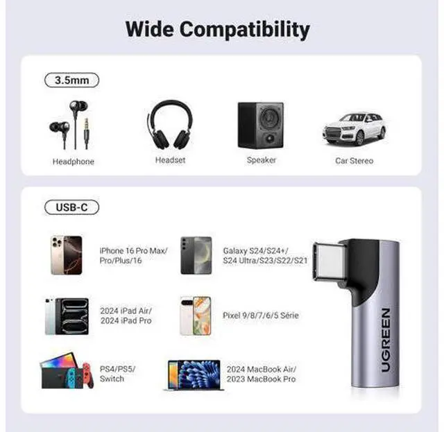 Travel: UGREEN USB C to Audio Jack Adapter features ultra-mini and lightweight size. Add little burden to your travel, but greatly increase your music or gameplay enjoy.