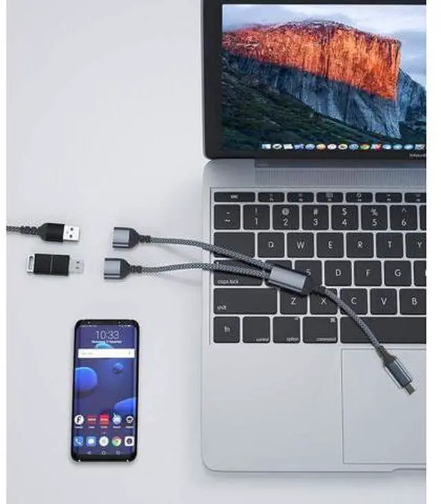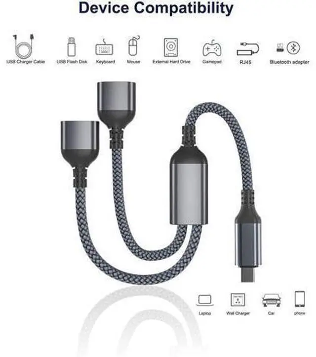 (Notice: This is a USB 2.0 splitter). (Less Chaos More Order) Need to simultaneously connect to your accessories like keyboard and mouse but don't want too many cables messing up your working space? Now you can. This USB-C to dual USB Adapter makes it possible to connect to two devices with one single cable so that you are free from all the hassle of two tangled cables. (Less Wearing More Saving) Tired of your wallet constantly getting worn and becoming thinner along with the wearing of other shoddy splitters? With double-braided nylon and aluminum casing that are not sensitive to twists and bends this cable can last longer than you can imagine. (Less Confusion More Concentration) With no need to download and install extra drive you can simply plug this splitter in your device and start using it right away. No confusing configuration no time-consuming adjustments. It's easy to stay focused with this USB cable.
