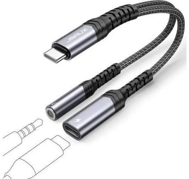 2 in 1 USB C to 3.5 mm Audio While ChargingJSAUX USB C audio adapter Splits your USB-C port into a USB-C port and a 3.5 mm audio jack allowing you to listen to music play games calling or driving while fast charging you device.