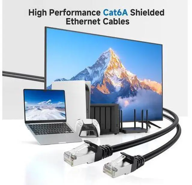 • High Performance Cat6a, 26 AWG, RJ45, Shielded Ethernet Cable provides universal connectivity for LAN network components such as PCs, computer servers, printers, routers, switch boxes, network media players, NAS, VoIP phones, PoE devices, and more