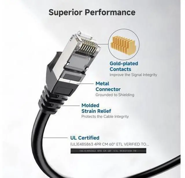 • The shielded connectors with gold-plated contacts and strain-relief boots provide durability, and ensure a secure connection; Bare copper conductors enhance cable performance and comply with specificatio