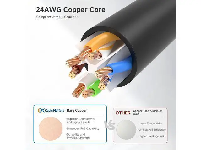 • High-Performance Connectivity: This Cat 6 ethernet cable is designed for superior performance, with a 24 AWG copper wire core. It provides universal connectivity as an ethernet cord for LAN network components such as PCs, servers, printers, routers, and more, ensuring reliable and fast network connections