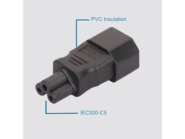 • C14 to C5 AC adapter current:2.5A , voltage: 110-250V, application:Notebook or other C14/C5 devices.